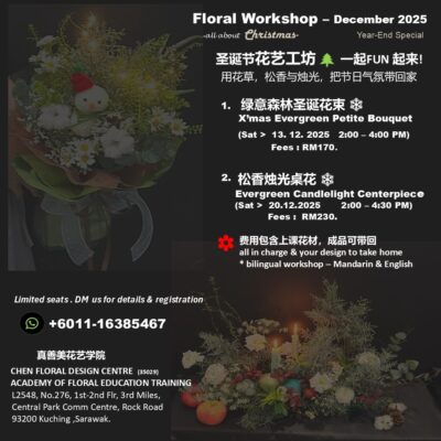 For private & Corporate events. Booking Whatsapp +601116385467 供社团邀请主办花疗一颗班. 询问Whatsapp +601116385467