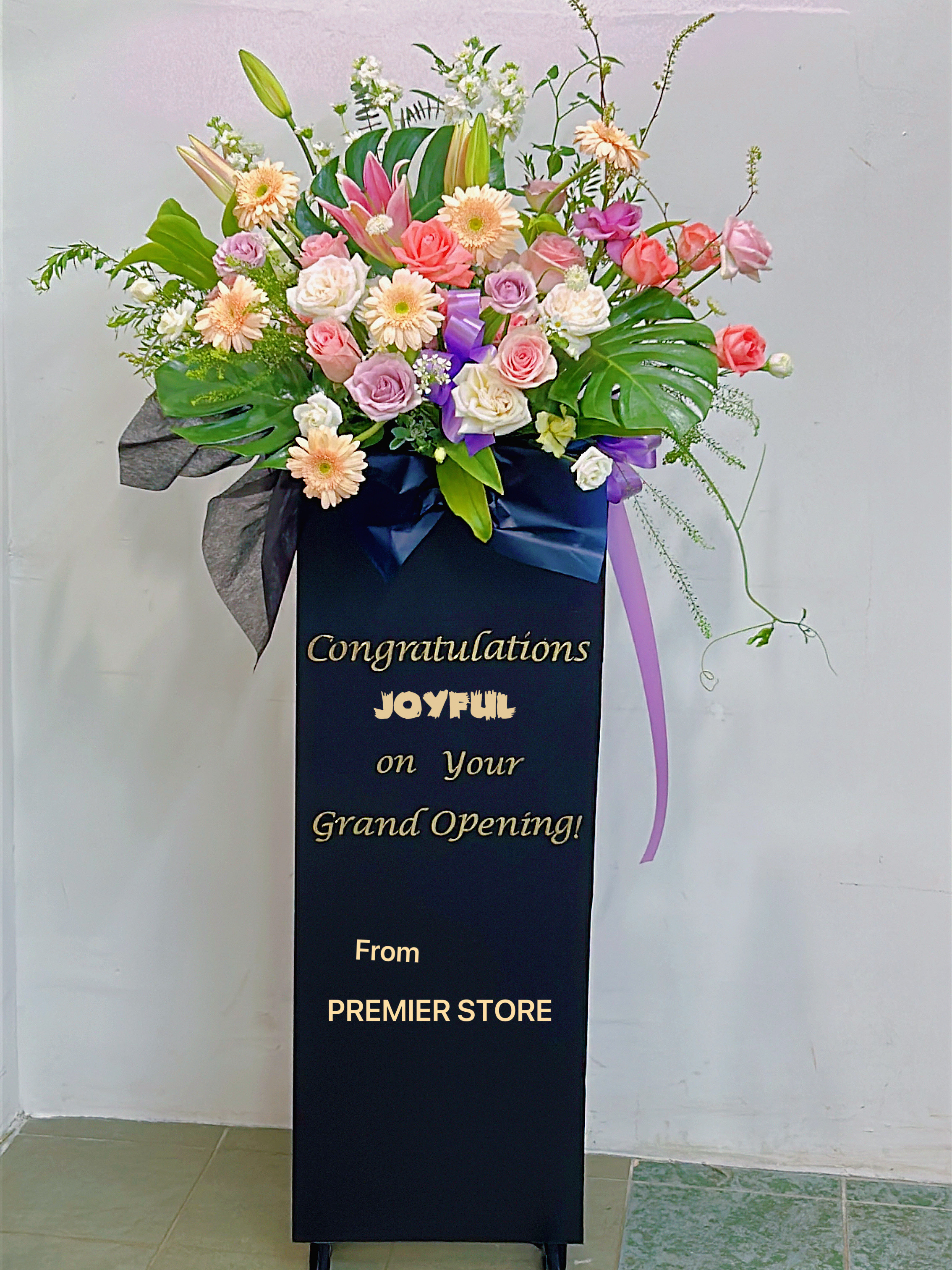 ⓘ Combination of flower materials such as flowers color, flower stand wrapping color / deco accessories used may vary from picture displayed. Florist will randomly select, mix & match based on current season stock availability at equal or higher value, without prior notice.