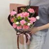A mix variety of Pink color flowers basket arrangement consists of Roses, Carnations & other seasonal side fillers