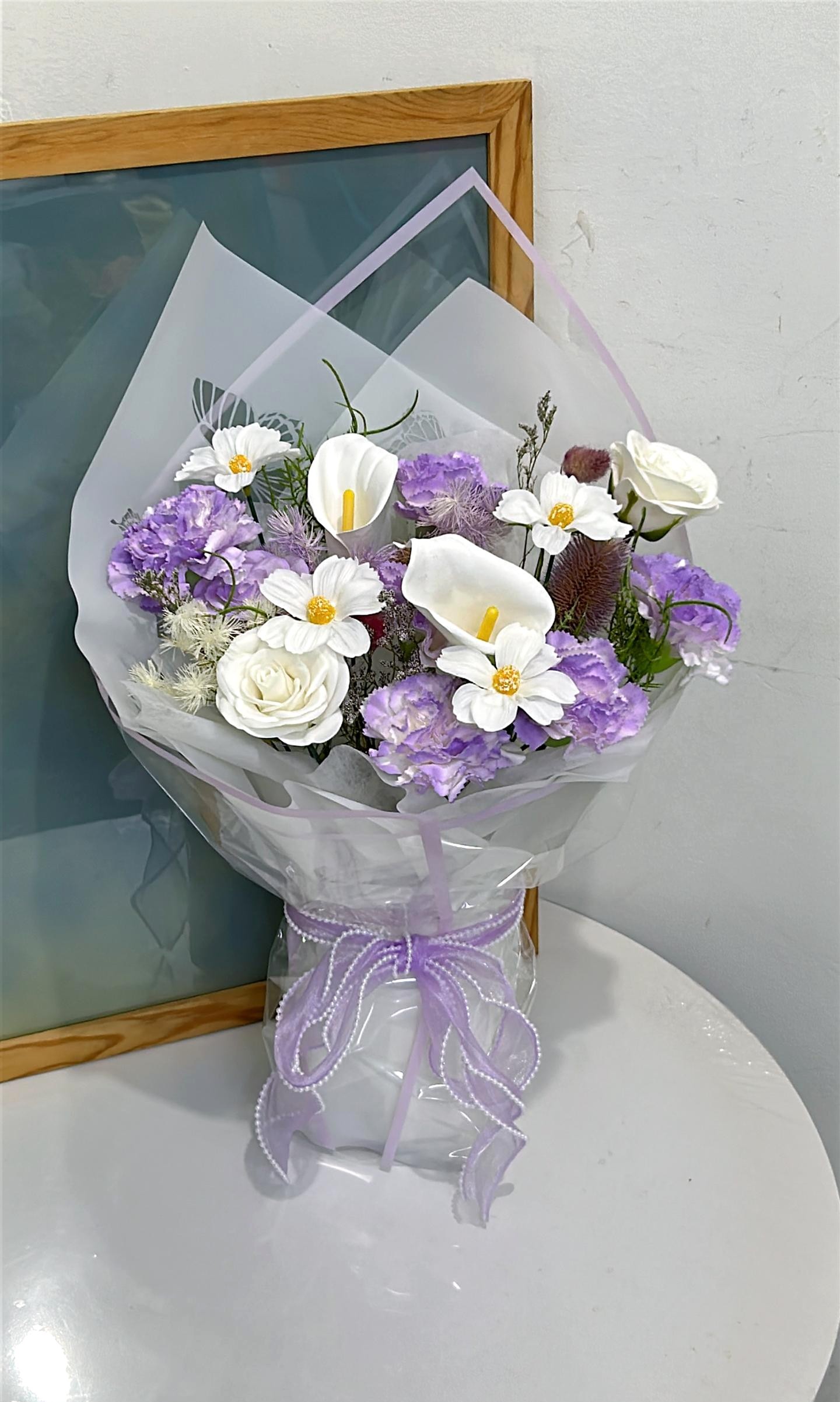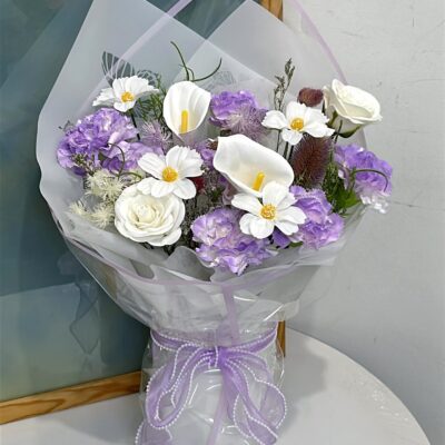 Lilac & White Soap Flowers Mix Bouquet  *(Ready stock x 1 unit)