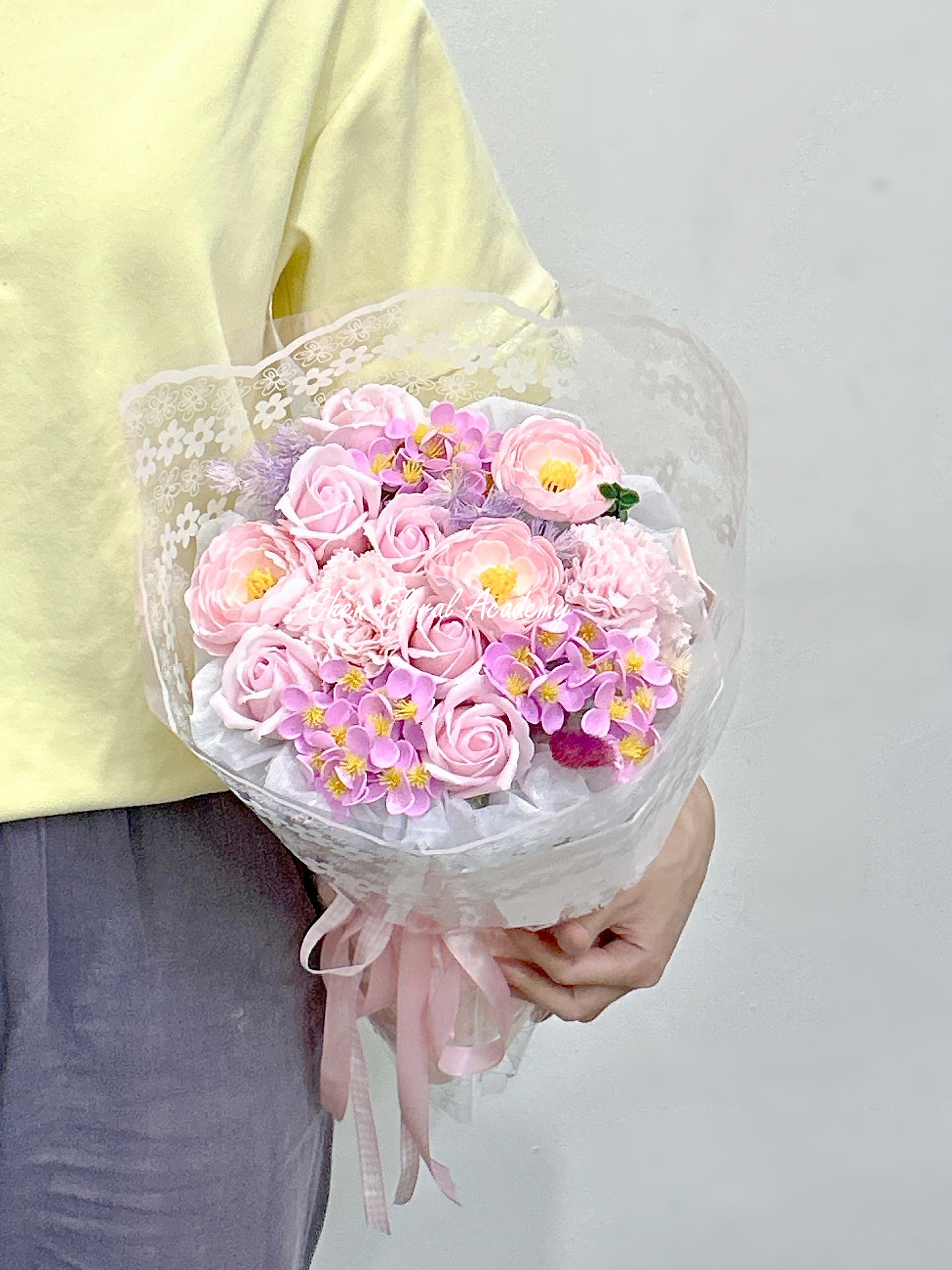 pink soap flowers mix bouquet delivery in Kuching, ready stock